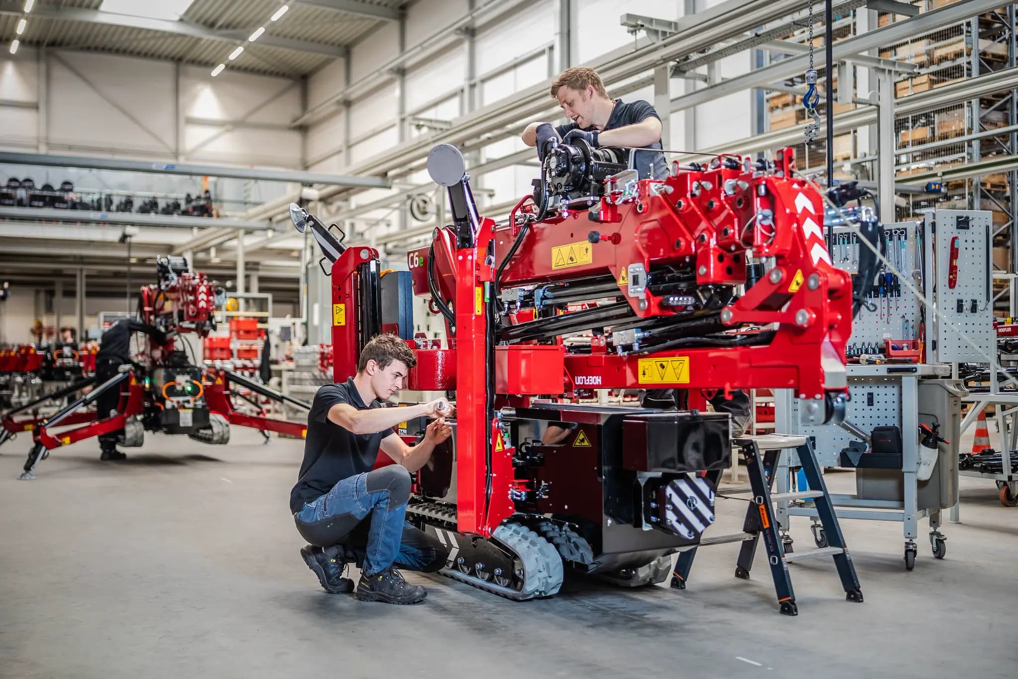 - C6e : a construction crane that is popular in city centres, lifts up to 3,000 kg, fits through narrow passages and can be transported on a trailer.