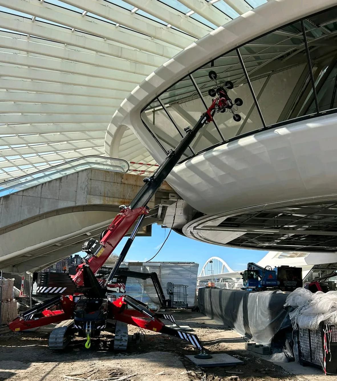 Safety. It's important that the crane you're using the glass lifter on has sufficient lifting capacity for the combined weight of the glass and the glass lifter. The crane must also be stable and approved for this type of work. In practice, the combination works smoothly, provided the crane and glass lifter are properly coordinated.