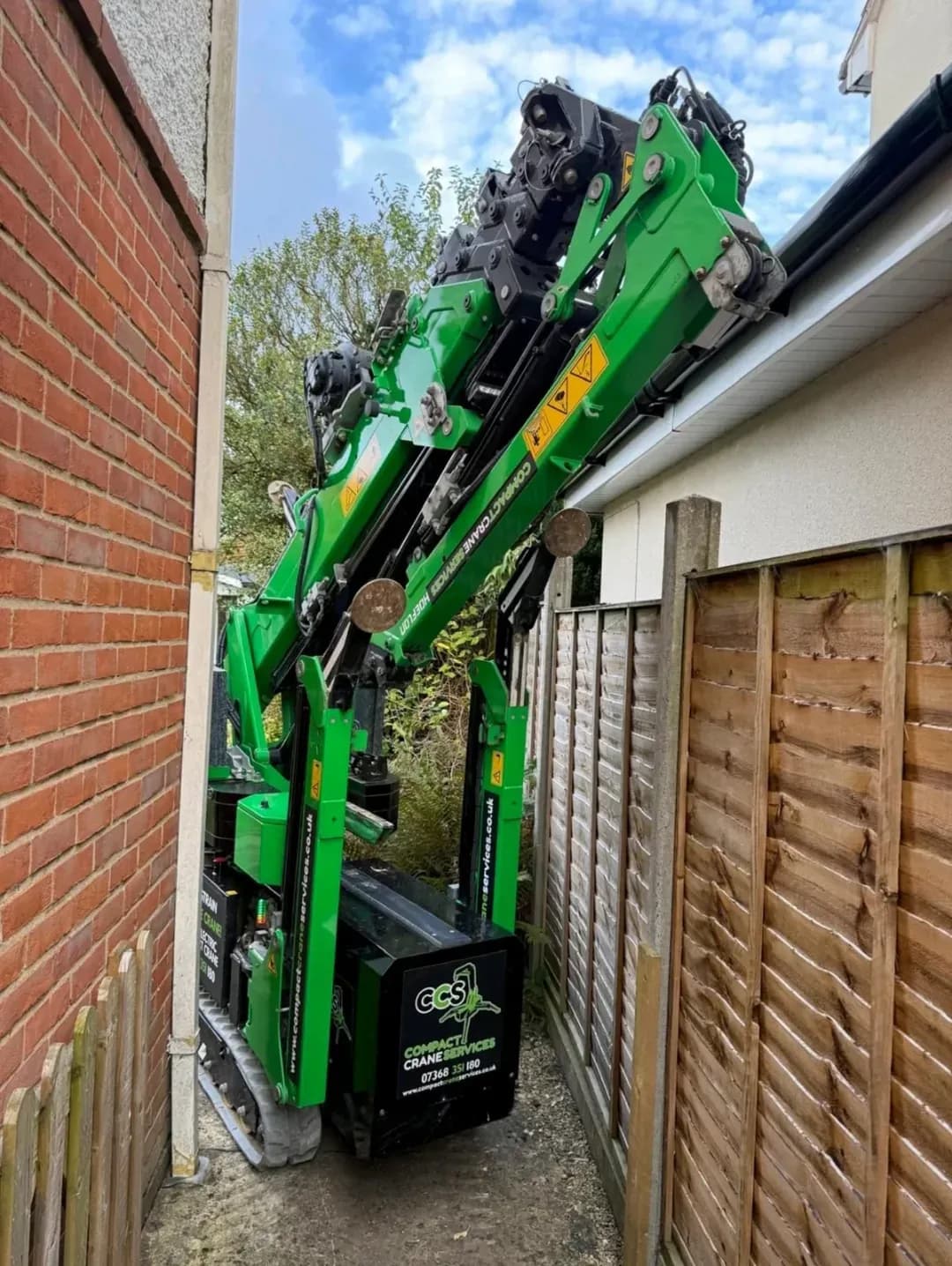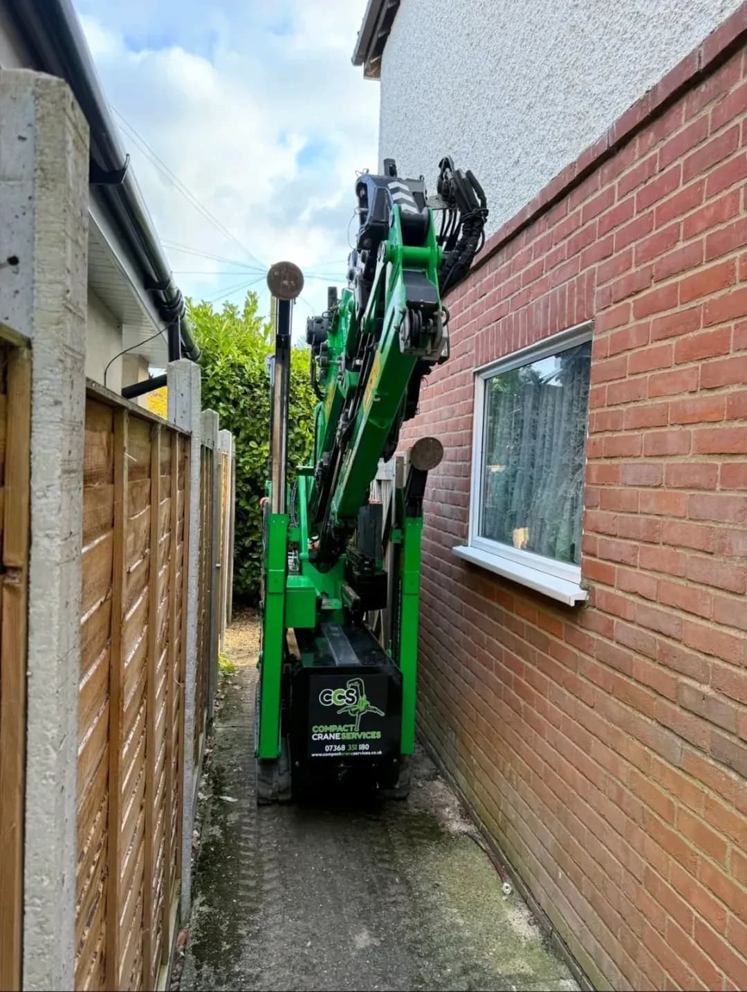 In this project, Compact Crane Services demonstrated the capabilities of the Hoeflon C6e. The crane had to maneuver through a narrow passage to reach the backyard: a challenge that a traditional crane simply wouldn't have been able to handle.