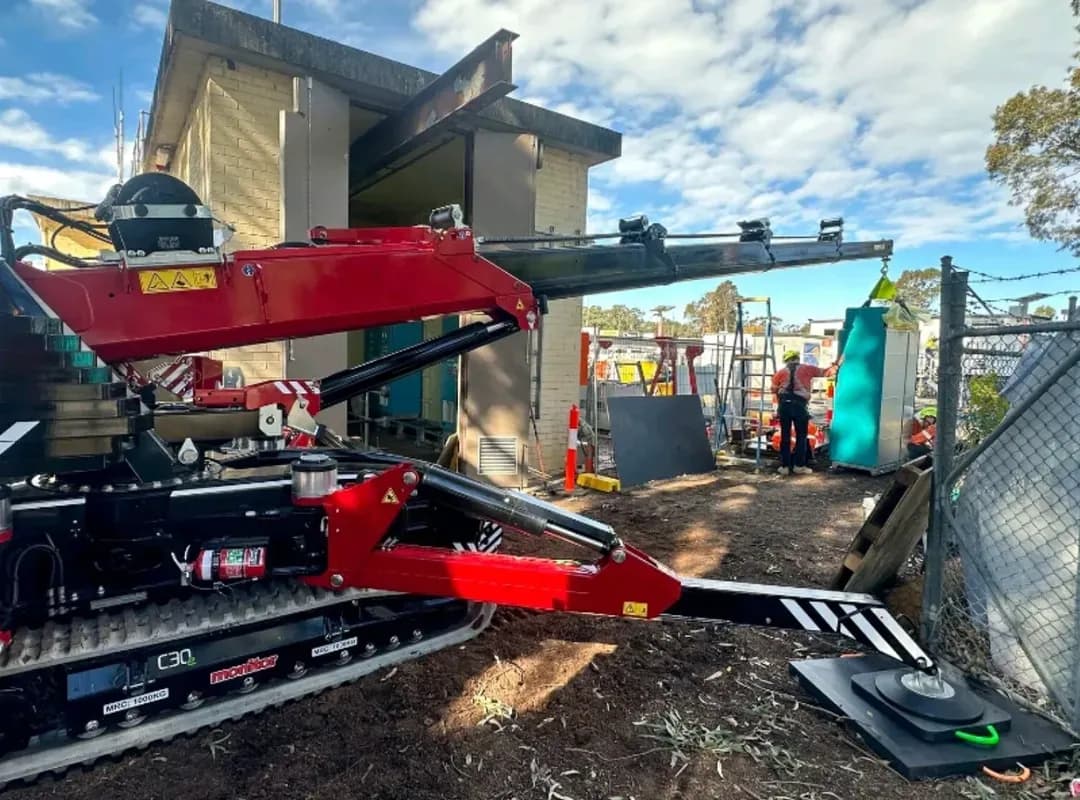 For an installation project in Australia, Rise Pacific deployed the Hoeflon C30e to install heavy VSD cabinets. The challenge was primarily the extremely limited workspace: narrow passages and minimal margins made the use of conventional cranes impossible.