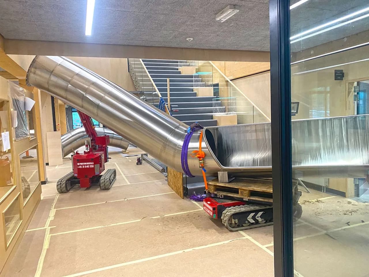 A Hoeflon C1e and TC1 installed an indoor slide for Preston Rentals