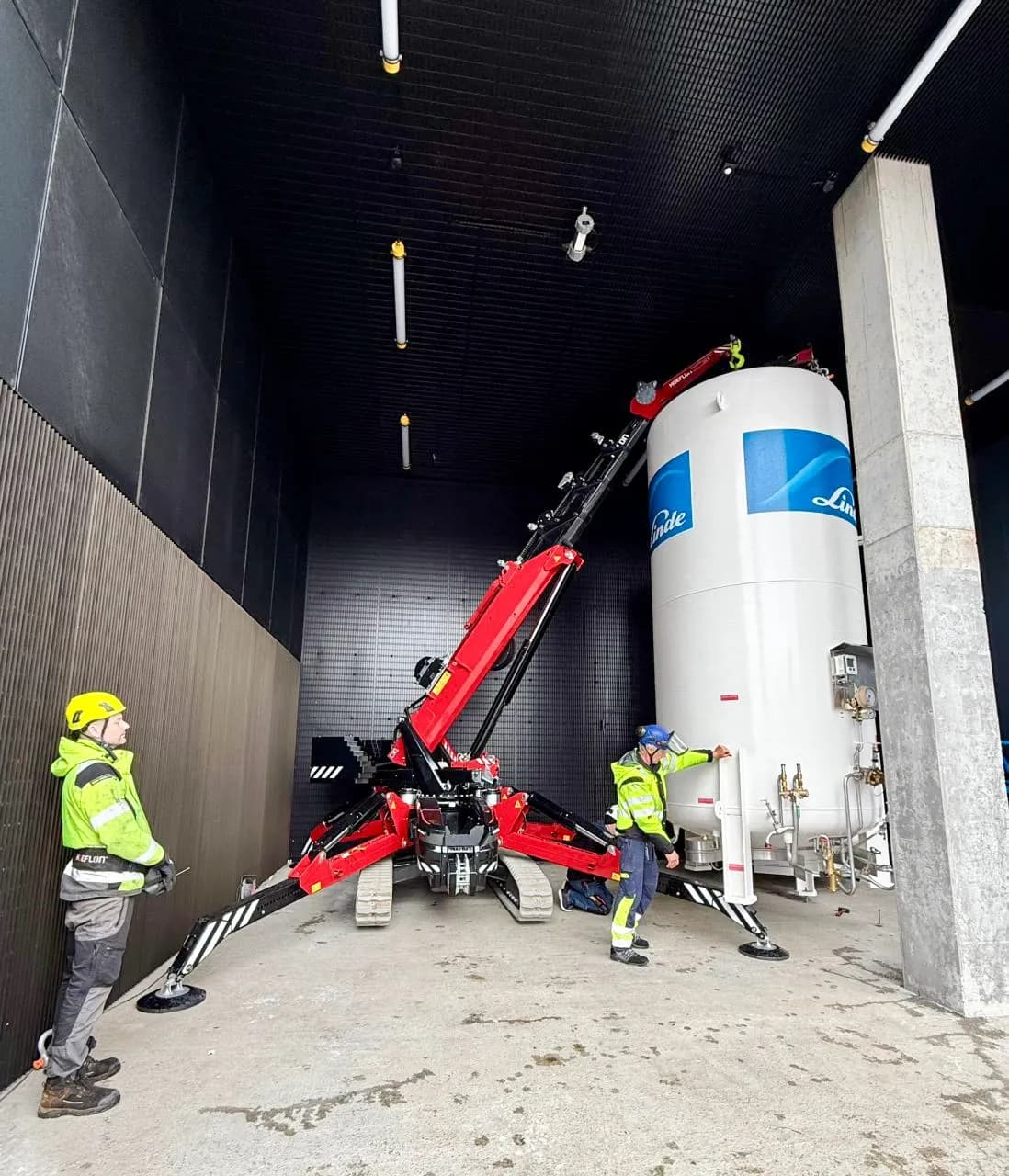 The fully electric C30e is a real powerhouse. This 9-tonne mini crane maximises its capacity and demonstrates its strength in the industrial sector. The crane is fully operated with a remote control, allowing the operator to focus entirely on the lifting work.